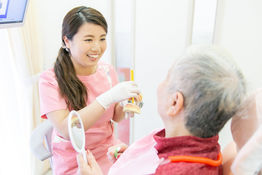 治療内容について説明をする際は、模型や写真、資料を使うことで、見て理解していただけるような配慮をしています。原因を知ることでご自身の歯を残すことに前向きになっていただき、日々のケアに取り組んでもらいたいと考えています。